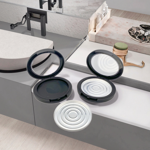 Atacado Compact Black Alumínio Bandeja Vazio Cosmetic Container Flip Cap Loose Powder Packaging Plastic Jars Wholesale Cosmetic