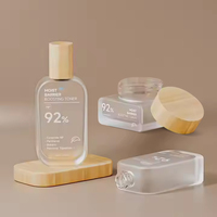 Kosmetik verpackung Quadratische Glasflasche Bambus kappe 30ml 50ml 100ml 120ml Kapazitäten für Mascara Eye Drops Perücken Heiß präge pumpe